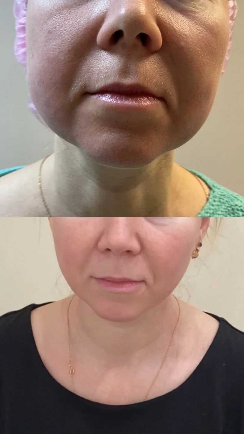 Результат: уменьшение объёмов, более чёткий овал лица, гладкая и подтянутая кожа. Эффект заметен уже после 2–3 процедур.