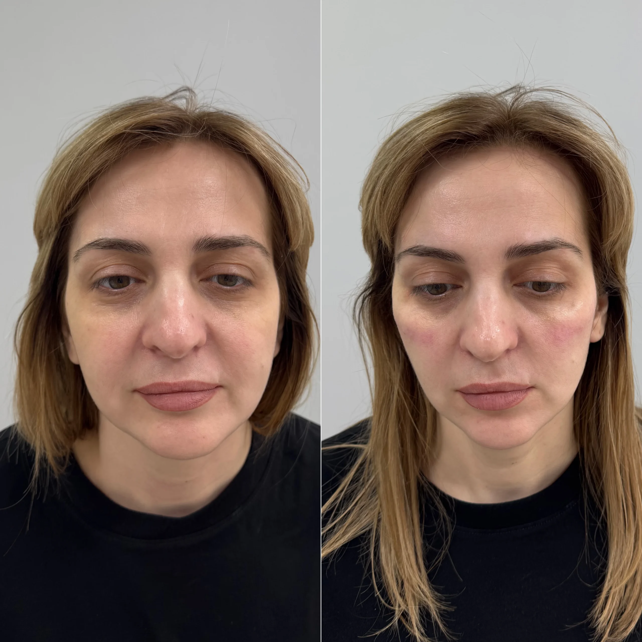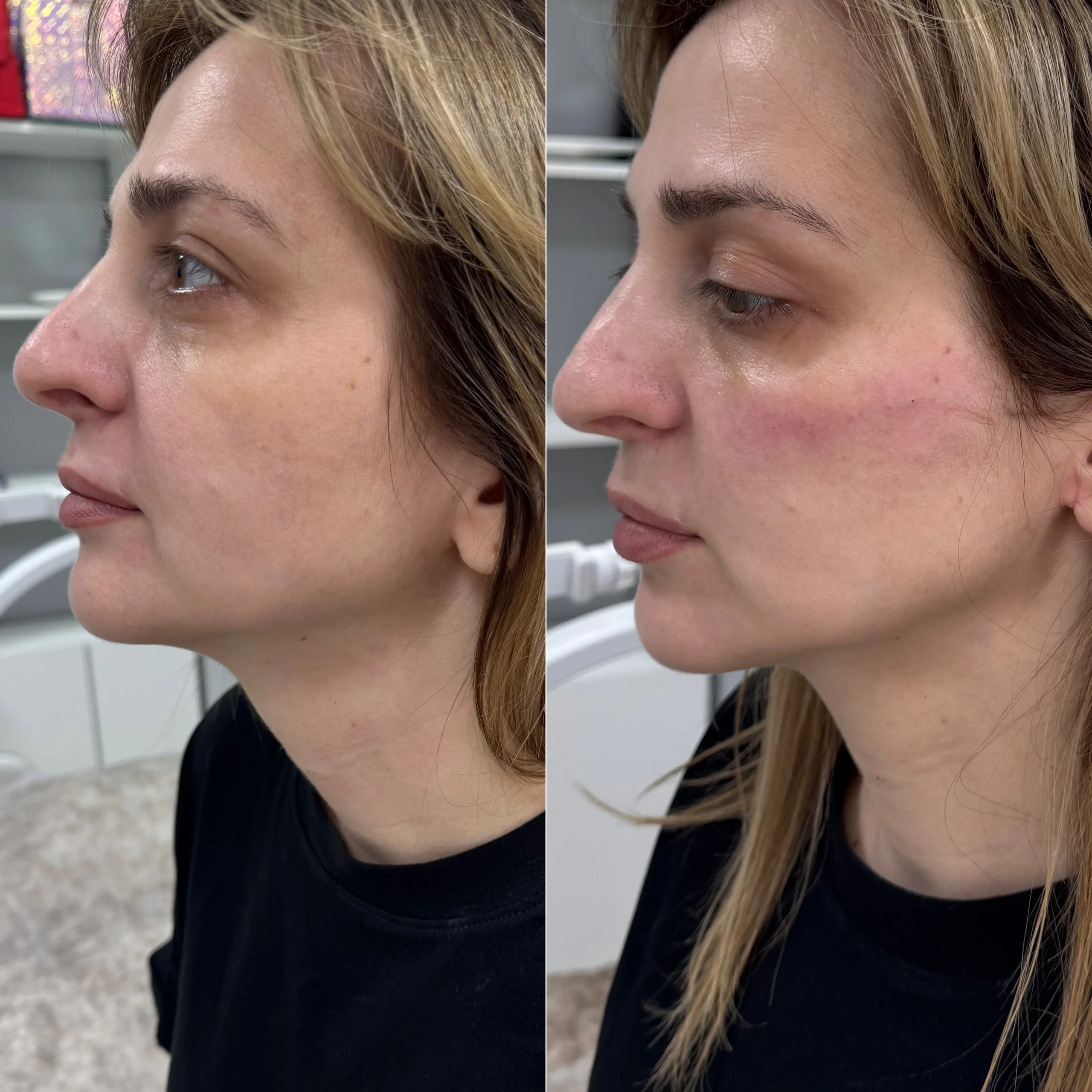 Результат: выразительные скулы, сбалансированные пропорции лица, более чёткий и подтянутый овал. Эффект виден сразу и сохраняется от 12 до 18 месяцев.