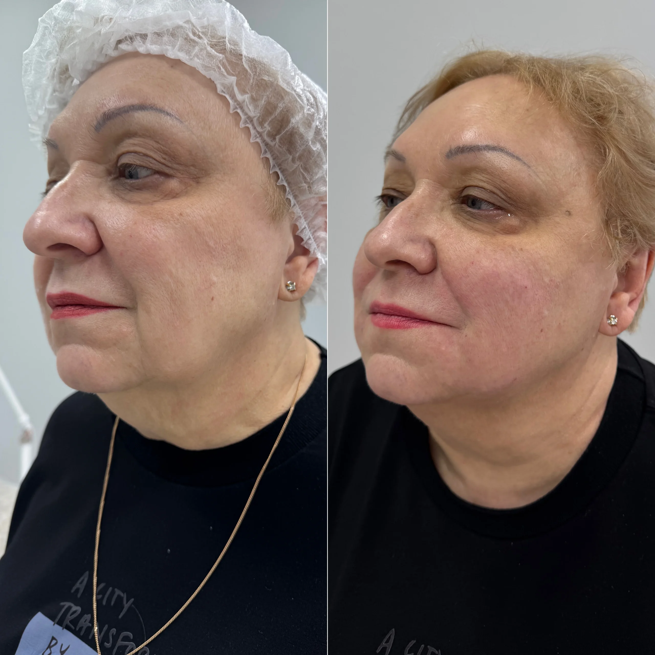 Результат: подтянутый овал лица, разглаженные носогубные складки, выраженные скулы и свежий, молодой вид без операции.